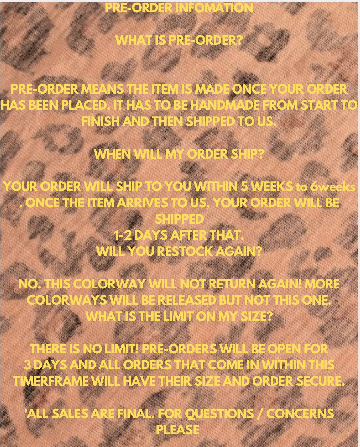 PRE-ORDER MEANS THE ITEM IS MADE ONCE YOUR ORDER HAS BEEN PLACED. IT HAS TO BE HANDMADE FROM START TO FINISH AND THEN SHIPPED TO US.